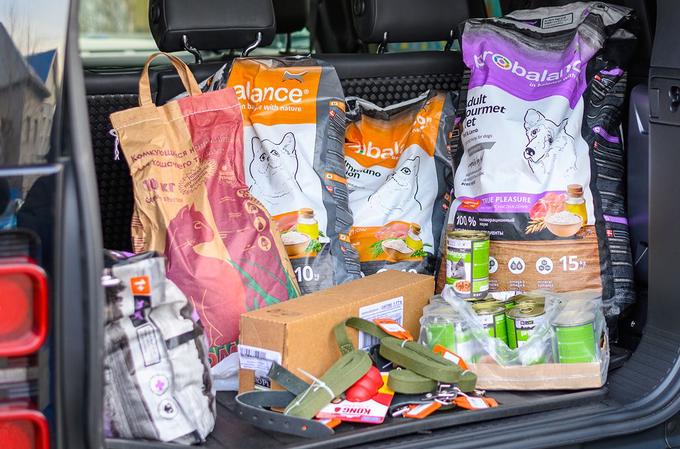 Мы приехали в приют не с пустыми рукам: весь багажник Land Rover Defender был заполнен кормами, игрушками, лекарствами, поводками, ошейниками и другими полезными мелочами.
